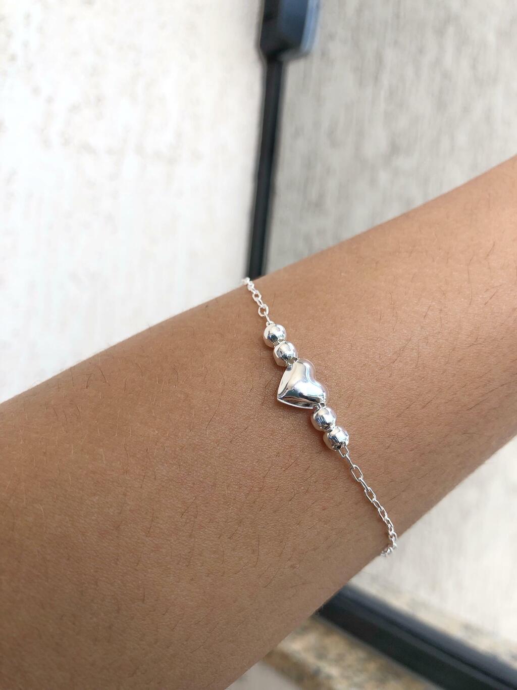 Pulseira: 19,5CM / Coração: 7MM / Bolinhas: 4MM